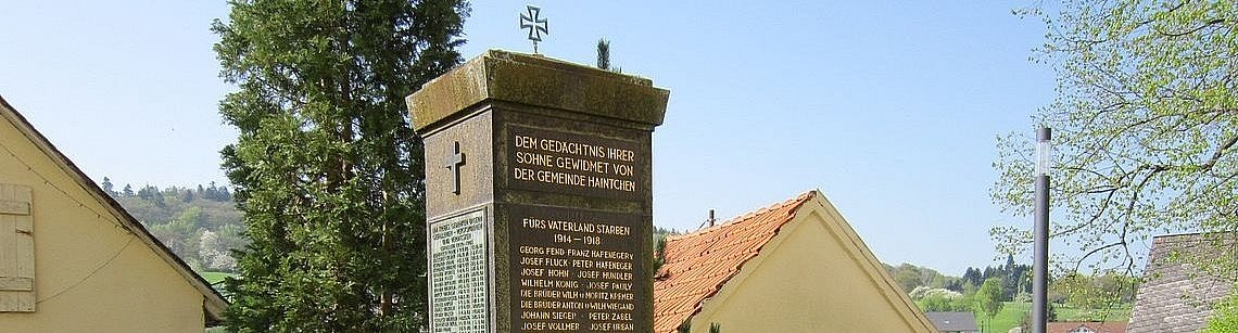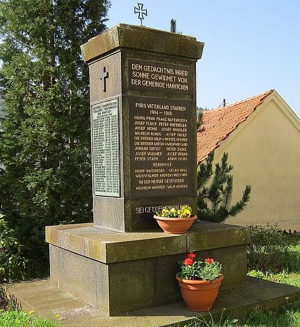 Im Jahr 1923 fand vor der Pfarrkirche St. Nikolaus die Einweihung des Kriegerdenkmals für die Gefallenen des I. Weltkrieges statt. Aus Haintchen sind 22 junge Männer aus dem Ersten Weltkrieg nicht mehr in die Heimat zurückgekehrt.