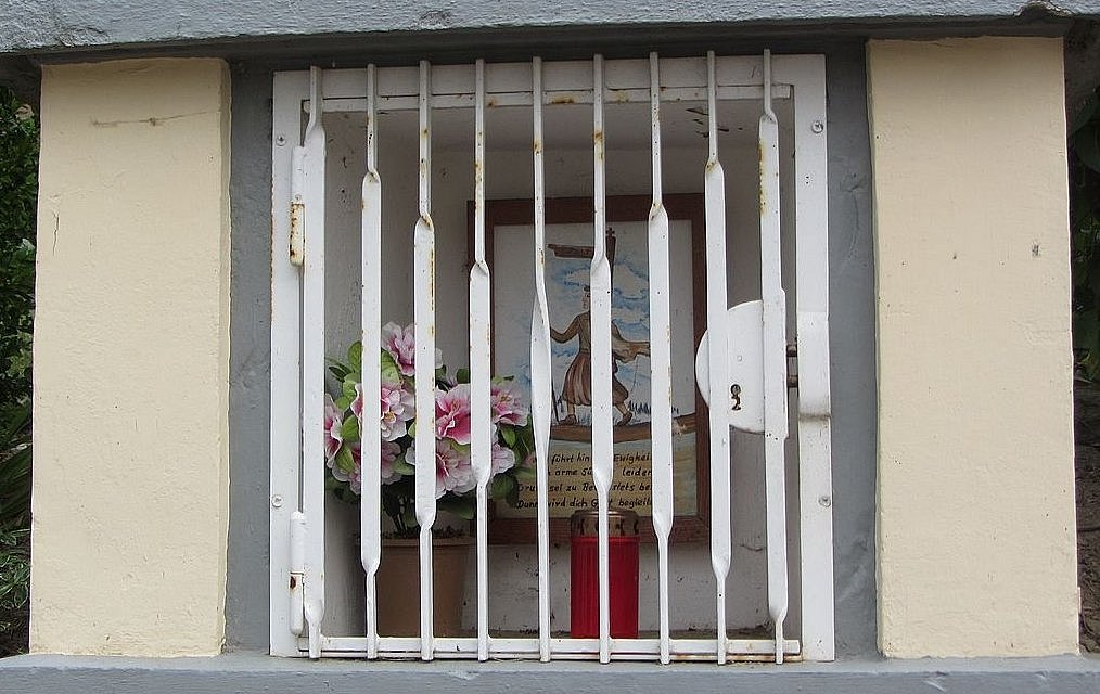 Das Bildnis »Arme Seelen« wurde als ursprünglich freistehender Bildstock später auf eine massive Mauer gesetzt.