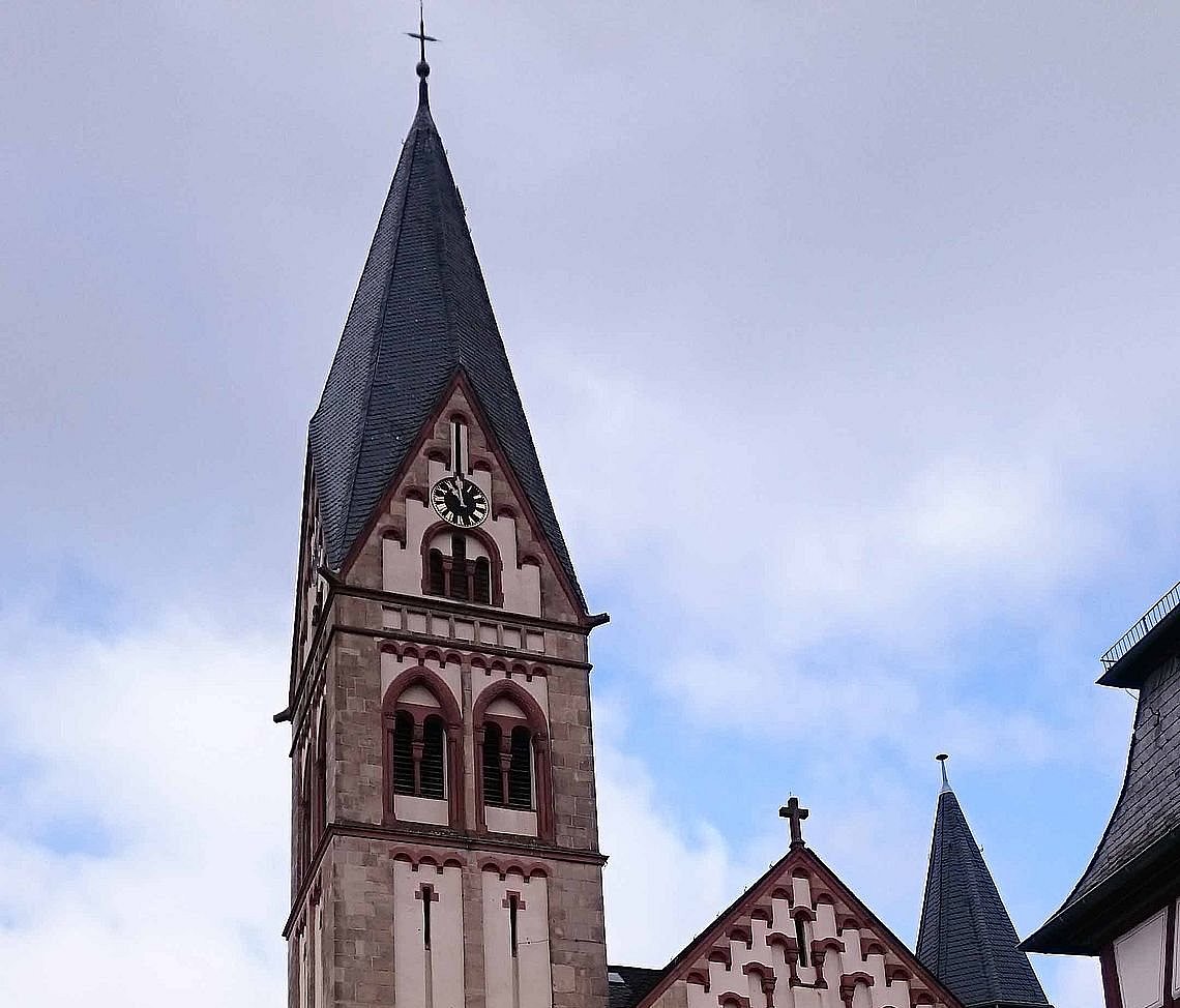 Die Alte Kirche erreichte zu Beginn des 19. Jahrhunderts infolge der Bevölkerungszunahme ihre Kapazitätsgrenze. Deshalb drängte Pfarrer Anton Spangenmacher die gemeindlichen und kirchengemeindlichen Gremien zum Bau einer neuen Kirche in der Brunnenstraße. Bereits 1907 begannen die Bauarbeiten, und schon 2 Jahre später am 25. Juli 1909 fand die Einweihung statt. Die Kirche ist eine Pfeilerbasilika mit Querhaus und hat 3 Türme. Sie ist im neoromanischen Stil erbaut. Das Geläut besteht aus vier Glocken: